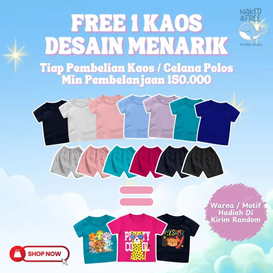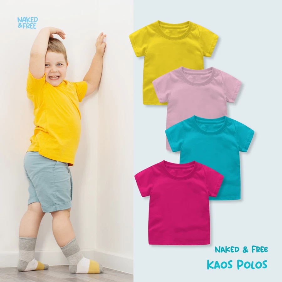 Naked & Free Kaos Polos Basic Anak Untuk 2-8 Tahun Bahan Katun Combed 30S Tersedia 15 Warna