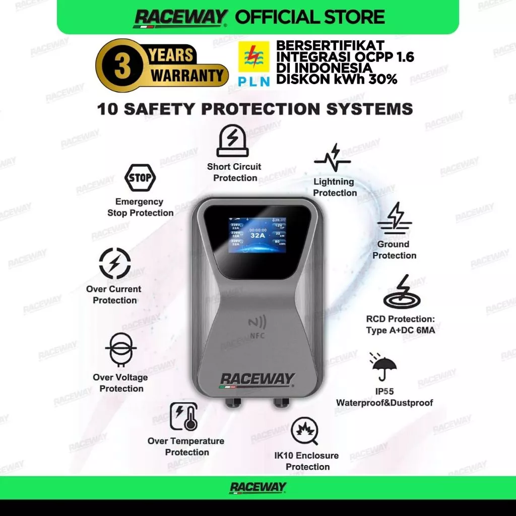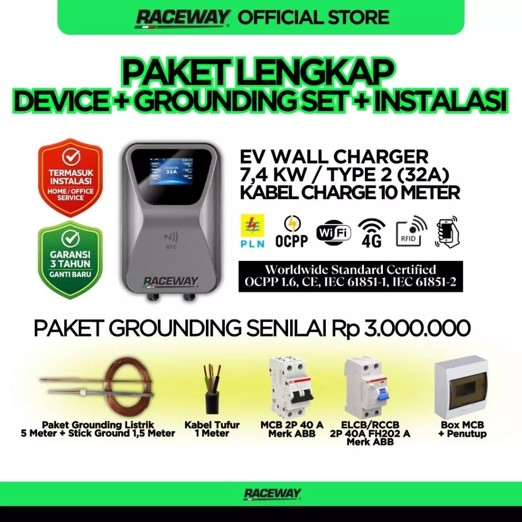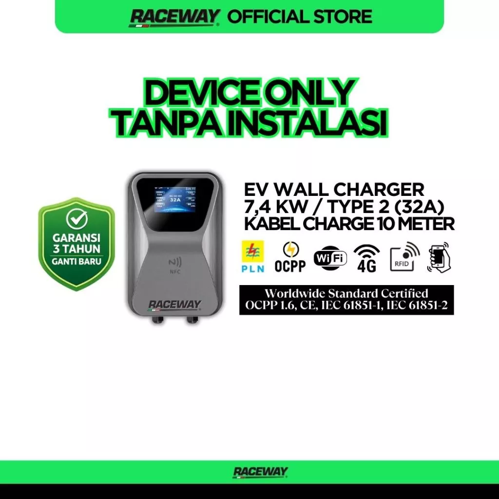 Raceway melengkapi perangkat ini dengan paket instalasi profesional gratis, memastikan pemasangan aman dan sesuai standar kelistrikan. Konsultasi awal dan survey lokasi dilakukan tanpa biaya agar titik pemasangan benar-benar optimal.